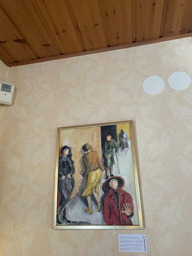 KONSTRUNDANS första stopp var hos tusenkonstnären Lola Nevhage Grönvall i Arrie. Hon målar på allt som går att måla på. En mycket varierande konst med verk på både natur, människor, stadsbilder och religiösa motiv. Vi visar bild på en av tavlorna som köptes in till vårt konstlotteri “Kvinnor i olika åldrar”.