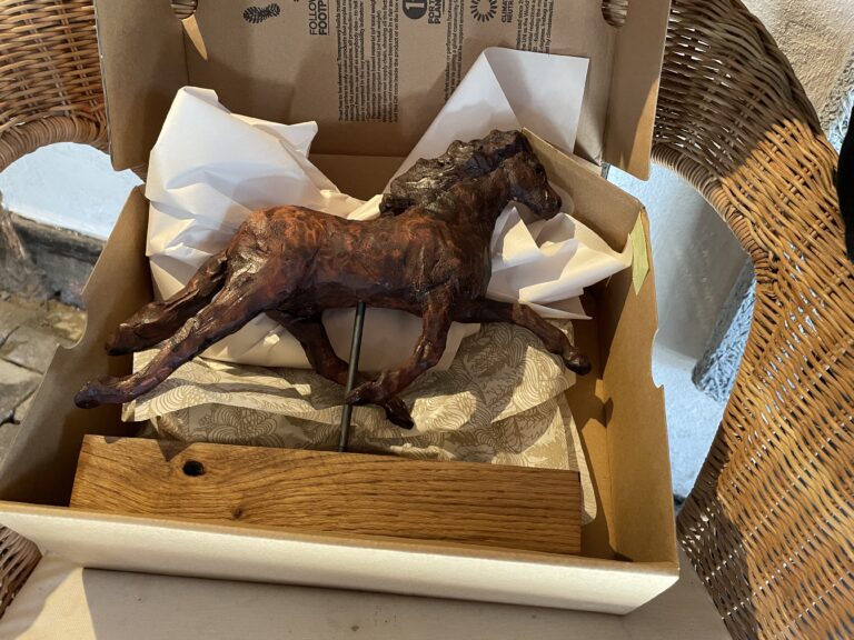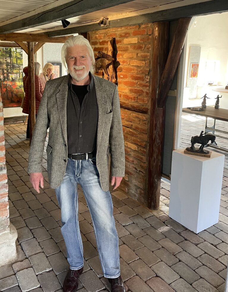 Efter en god lunch på Bongska Huset i Abbekås stannade vi hos Jon Leifsson, skulptör. Jon Leifsson är känd för den 12 m höga skulpturen med Nils Holgersson, som står vid stora vägen mot Ystad i Skurups kommun men även hästars vackra linjer och uttrycksfulla rörelser har han arbetat mycket med. En av hästskulpturerna kan någon av våra medlemmar vinna på 2026-års lotteri.